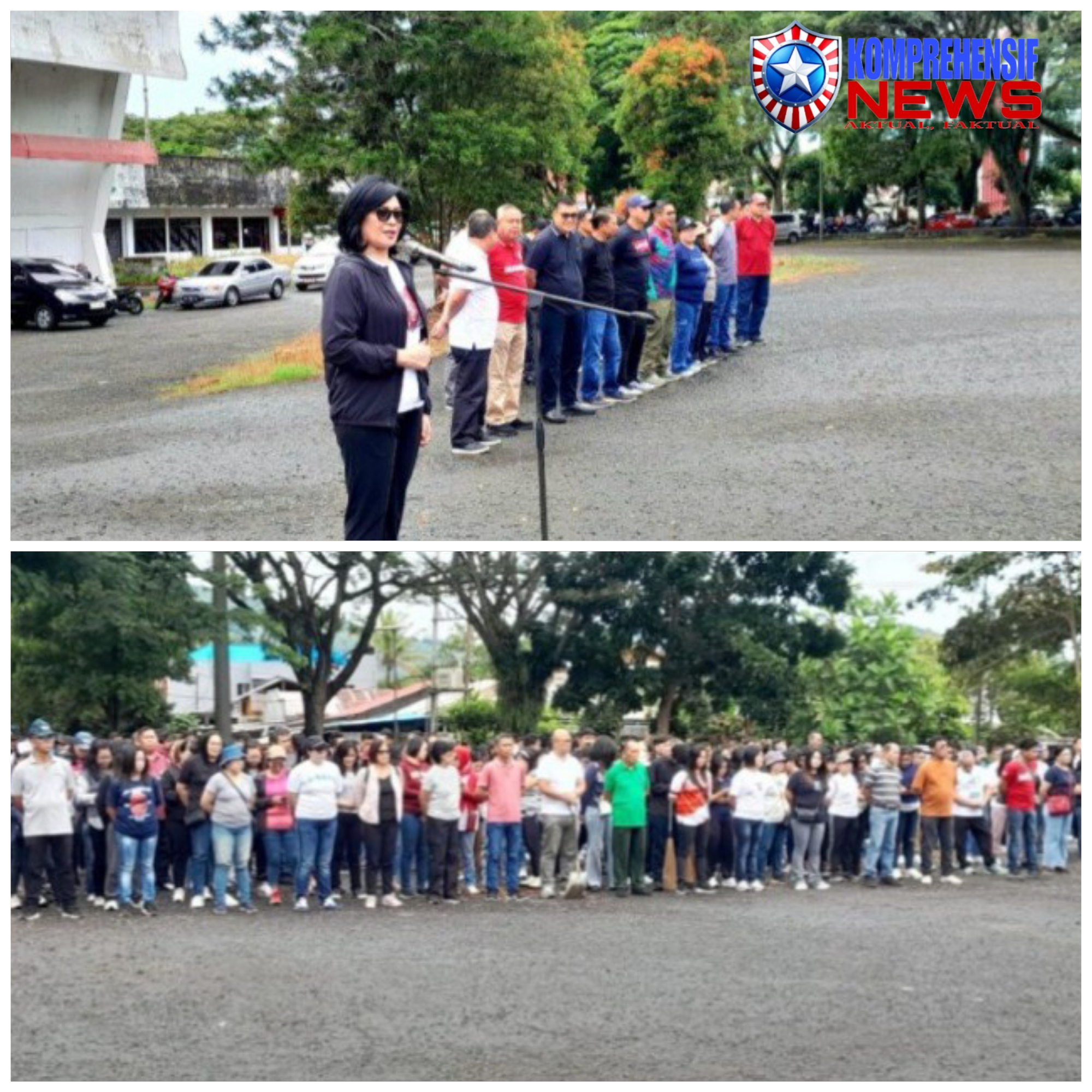 Usai apel, Sekda Watania memimpin peregangan dan senam pagi, diikuti dengan kerja bakti bersama seluruh jajaran Pemkab di area sekitar Stadion Maesa Tondano, sebagai simbol kecintaan terhadap Minahasa dan Tondano.
